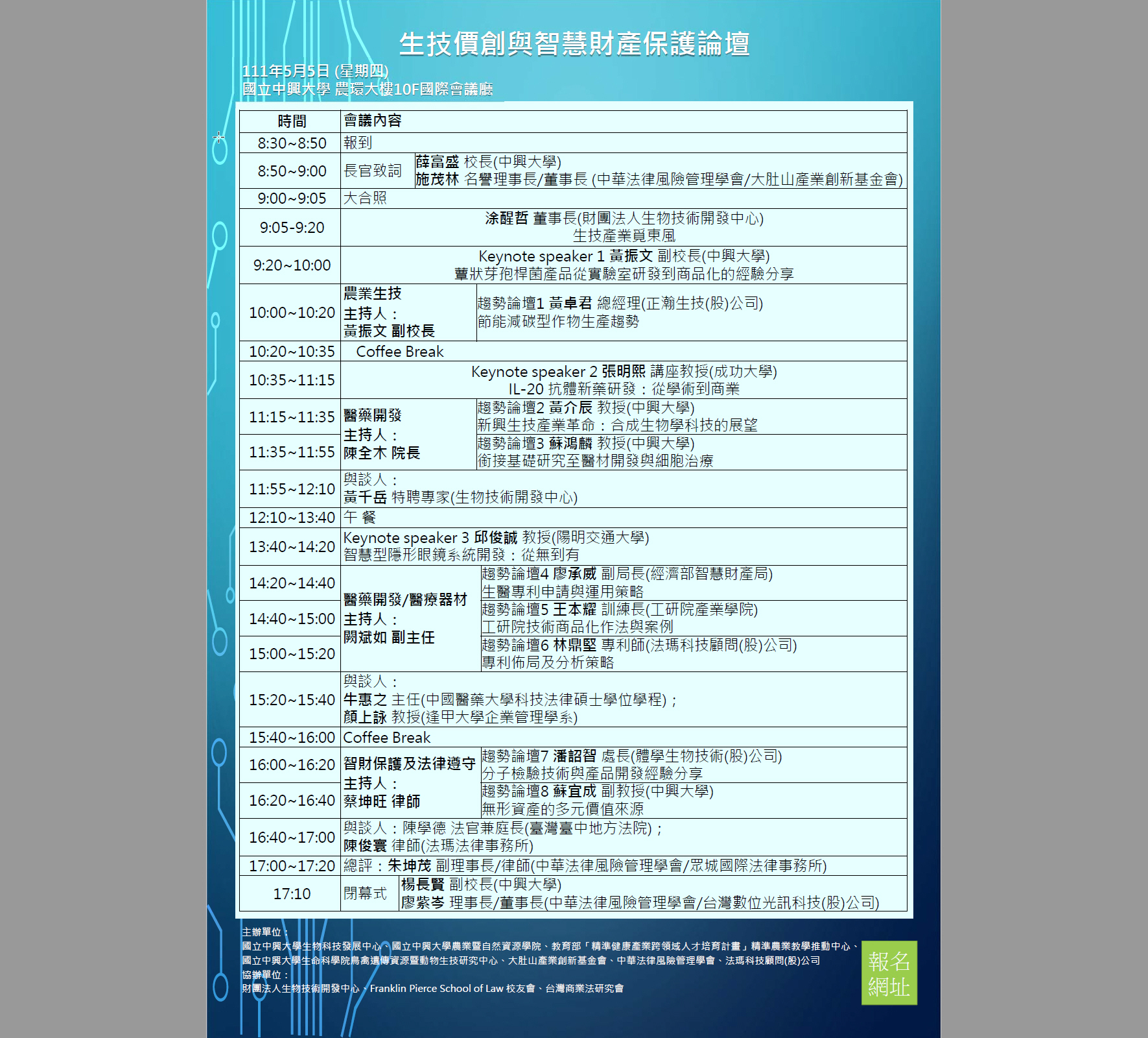本所與中興大學111/5/5 舉辦生技價創與智慧財產保護論壇